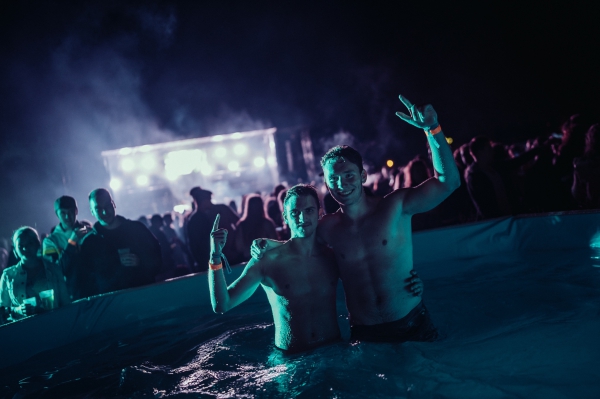 Um 19 Uhr ist von dem Problem zu Beginn der Party nichts mehr zu spüren. Max Bering betritt die Bühne und legt dort gemeinsam mit dem Monheimer DJ Air Flik auf. Bereits jetzt herrscht eine Top-Stimmung auf der Bürgerwiese. Vielleicht sind daran die 250 Liter Freigetränke nicht ganz unschuldig. Sie sind jedenfalls gegen 19:30 Uhr vollständig aufgebraucht, was der Stimmung aber keinen Abbruch beschert. Insgesamt 40 Helferinnen und Helfer sind in Schichten verteilt unterwegs, doch der Ansturm ist so groß, dass die Personen am Wertmarkenverkauf aufgestockt werden müssen. Wie gut, dass Ingo einige PETO-Mitglieder als Springer eingeplant hat. Inzwischen ist es 20:30 Uhr. Zeit für den Solinger Promi-DJ Topic, der schon im letzten Jahr bei den PETO-Summerbeats dabei war. Und auch in diesem Jahr scheint er mehr als gut anzukommen. Das Publikum ist begeistert, als er seinen neuen Song vorstellt. Die Stimmung ist ausgelassen. Nebenbei springen trotz bewölktem Wetter einige Gäste in den Pool. Andere schießen Selfies vor einem großen Summerbeats-Schriftzug, den die Helfer nur einige Stunden zuvor aufgebaut hatten.