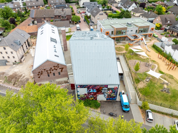 Nach mehreren Jahren Umbauarbeiten ist das Sojus 7 an der Kapellenstraße nun fast fertig. Konkret wurde neben dem bereits im September 2023 fertiggestellten Veranstaltungsgebäude jetzt auch der Umbau der alten Fabrik, die mit der nördlichen Außenmauer, einer Innenwand und der Kappendecke erhalten wurde, abgeschlossen. In diesem Gebäude ist im Mai bereits offiziell eine Reparauturwerkstatt eingeweiht worden. Derzeit erfolgen Restarbeiten an insgesamt fünf Proberäumen, einem Tonstudio, der Garderobe, einem Medienraum und einem Bereich für Ehrenamtliche. Ein besonderes und liebevoll „Scheune“ genanntes Schmuckstück ist der 120 m² große Freiraum mit Feuerstelle geworden, der auch für Veranstaltungen genutzt werden kann. Das Dachgeschoss mit einem Lager, Technik und einer kleinen Galerie ist ebenfalls sehenswert.