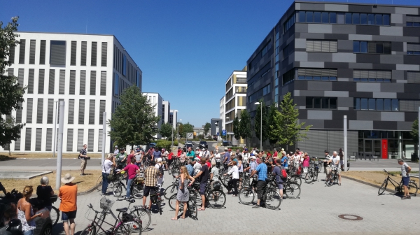 Es ist Sonntagnachmittag, 14 Uhr. Das Thermometer zeigt stolze 31 Grad. Die Sonne scheint kräftig auf den Monberg, an dessen Fuße sich knapp 60 Radfahrerinnen und Radfahrer versammelt haben. Grund dafür: Die diesjährige PETO30plus!-Themenradtour steht an.