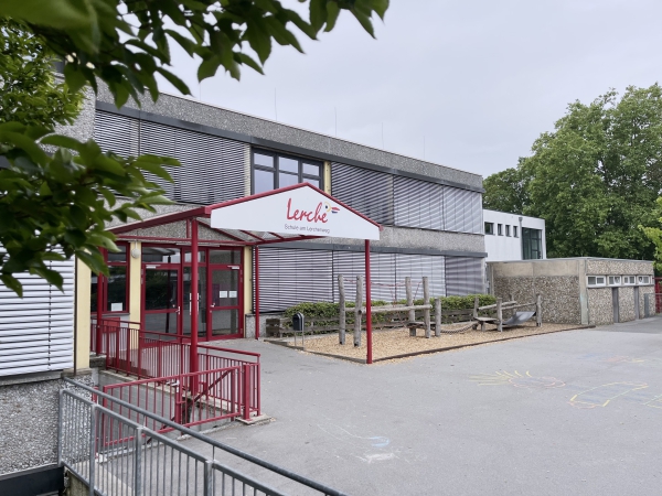 Mit insgesamt 480 Schülerinnen und Schülern hat die Grundschule Lerchenweg in jedem Jahrgang vier Klassen. Die relativ kleine Grundstücksfläche von 6450 m² ist mit den Bestandsgebäuden und dem erforderlichen Schulgelände maximal ausgelastet. Geprüfte Möglichkeiten von Erweiterungsbauten mit unterschiedlichen Ausrichtungen boten keine zufriedenstellende Lösung für den benötigten Platzbedarf, sodass die Stadtverwaltung auch einen Neubau auf dem Gelände der heutigen Außensportanlage der Peter-Ustinov-Gesamtschule in Erwägung gezogen hat. Dort hat eine vierzügige Grundschule ausreichend Platz für die erforderlichen Räumlichkeiten sowie passende Schulhofflächen im Außenbereich.