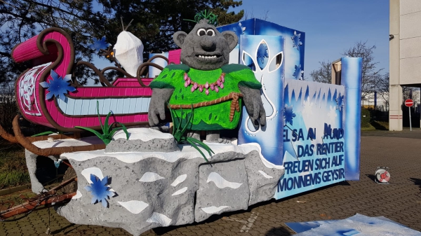 „Elsa, Anna und das Rentier freuen sich auf Monnems Geysir“, lautet der dazugehörige Mottospruch. Ausgewählt wurde er nicht nur, weil kürzlich der zweite Teil des berühmten Disney-Films erschienen ist, sondern vor allem auch als Reaktion auf das diesjährige Motto der Großen Monheimer Karnevalsgesellschaft „Kein Kunssjeschmack, doch Kohle satt, Monnem vööd Kulturhauptstadt“.