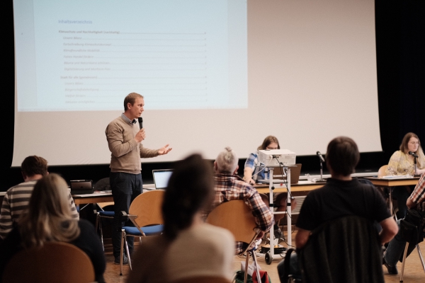 Auch die nächste Abstimmung erfolgte einstimmig: Die Aufstellung des Bürgermeisterkandidaten. Daniel Zimmermann ist seit mittlerweile elf Jahren im Amt und hatte bereits vor dem Parteitag angekündigt, für eine weitere Wahlperiode zur Verfügung zu stehen. Nachdem sich keine weitere Kandidatin und kein weiter Kandidat beworben hatte, wurde er ohne Enthaltungen oder Gegenstimmen zum Bürgermeisterkandidaten gewählt.